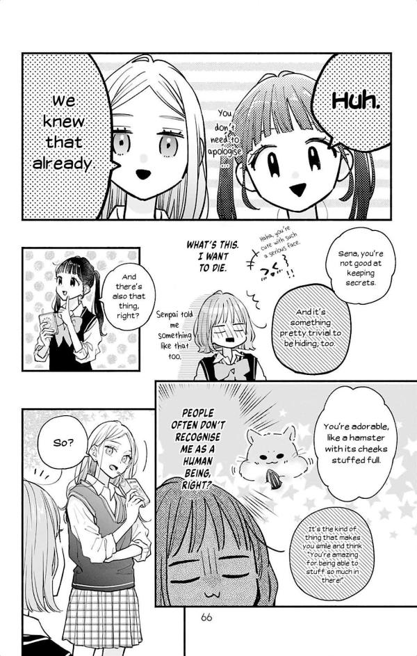 I think it's good to have a less reliable, more realistic kind of boy as the male lead. However, as a reader who has been in hot and cold relationships, I can't help but feel like the male lead is not mature enough for Yoi. Yoi is honest, courageous and shy. She's always doing her best for him, as all shoujo heroines. Yet every trial this couple has makes me lose confidence in Ichikawa. As a rich boy, I understand that his character is designed to be carefree and inconsiderate, but if we look at the entire story in retrospect, most of the problems these two have faced (in a month or two of dating) have all been related to Ichikawa being avoidant, pretending like he doesn't love Yoi, making her reach out to him. The main plot device is Ichikawa's lack of delicacy.