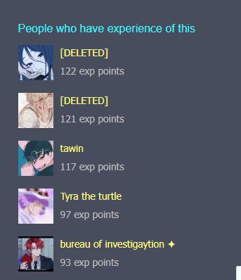 For eg, if you go to the topic 'question' (which is the most used topic for everything), the person with the highest exp has basically managed to have the highest total upvotes on all their experiences combined on that certain topic.