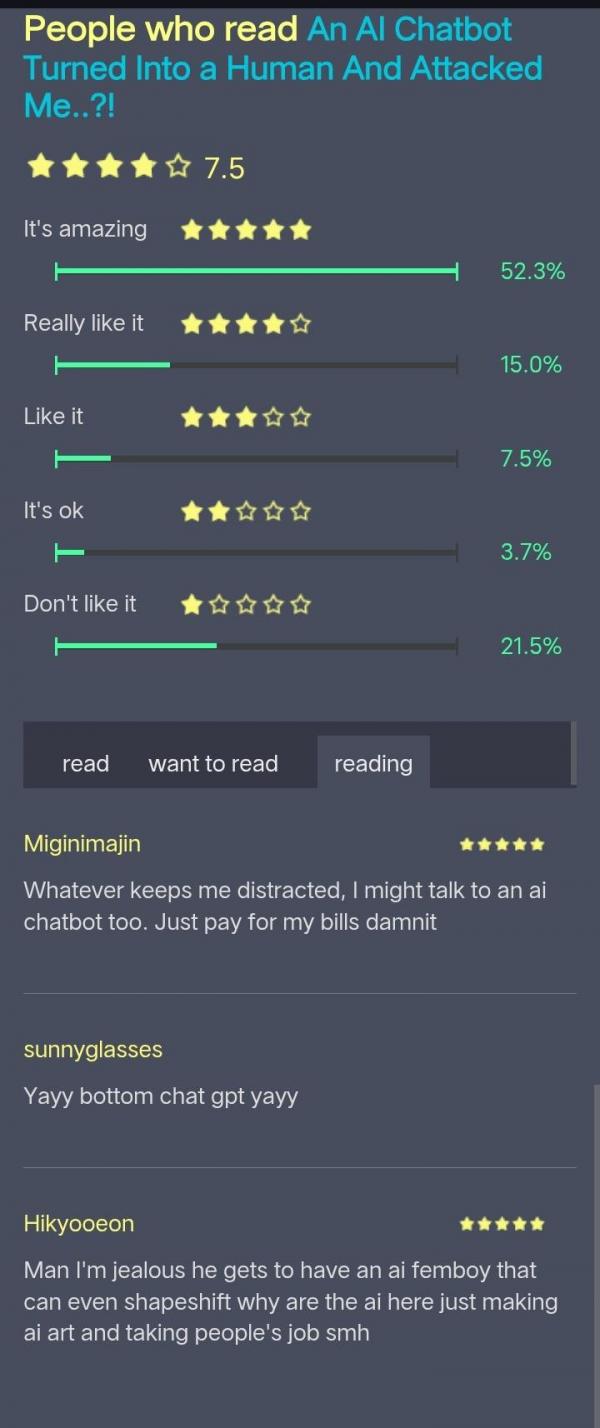 Story is literally chatgpt that turned into a bottom that cater to your taste lmao